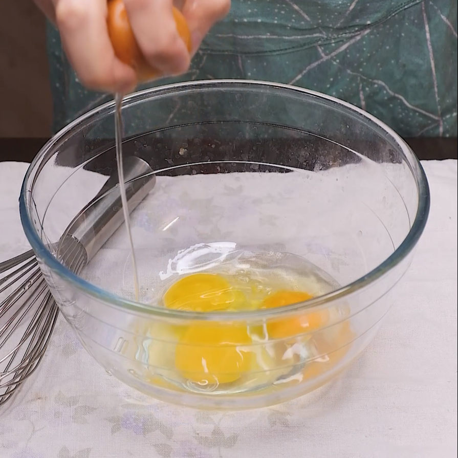 5️⃣ Dubenyje išplakame 3 kiaušinius, įtarkuojame ½ citrinos žievelės ir įspaudžiame ½ citrinos sultis.