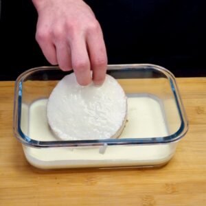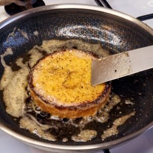 7. Brioche riekes mirkykite 45–60 sek. Riekė turi pasunkėti, bet dar laikyti formą.