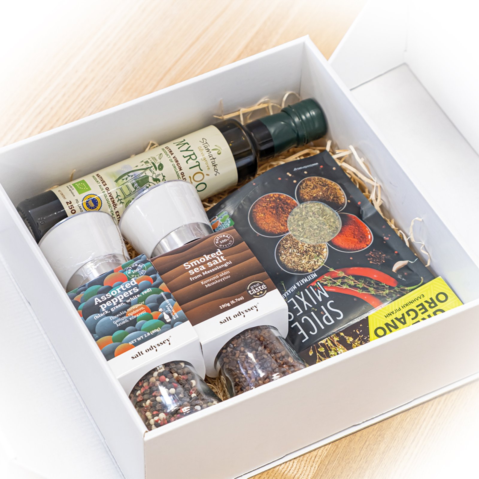 Svarbu: 750 ml ir 500 ml alyvuogių aliejaus buteliai į šią dėžutę netelpa, todėl nebus pakuojami.