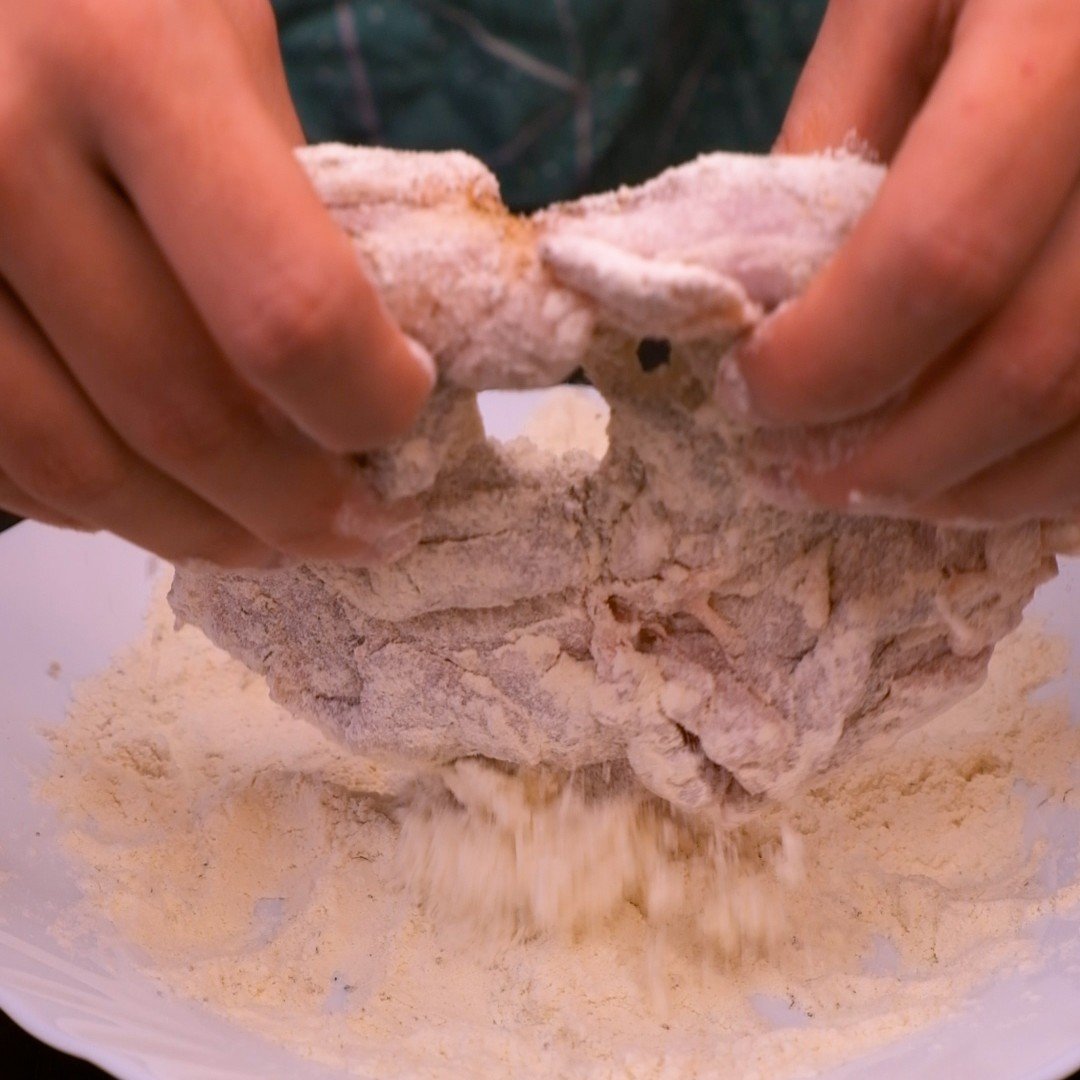 4. Iškepusią vištieną trumpam išimame iš keptuvės.