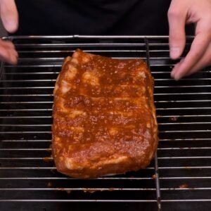 Beveik visą marinatą paskirstome ant šonkauliukų. Šiek tiek galima pasilikti pabaigai aptepti.